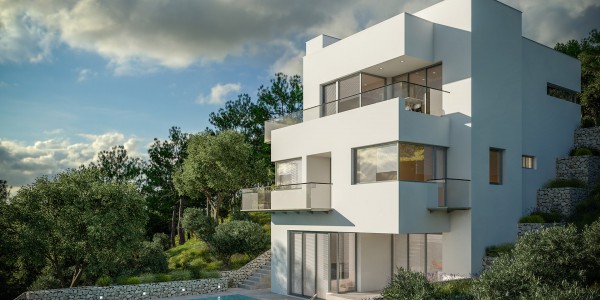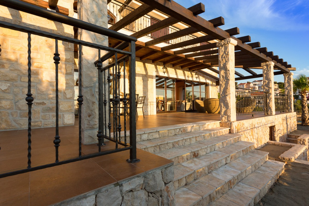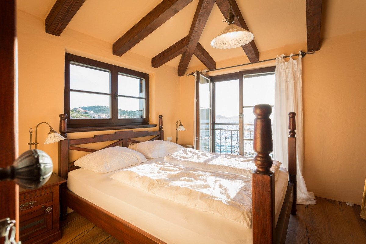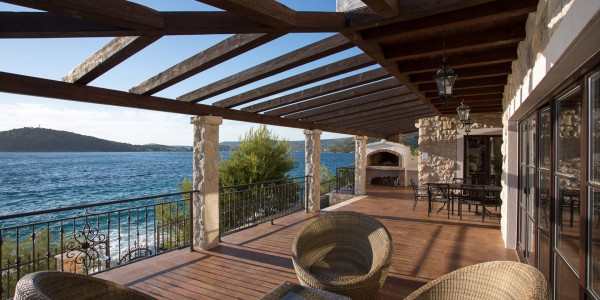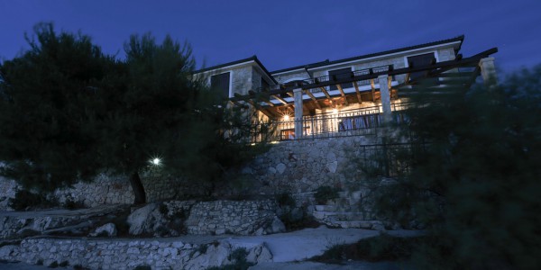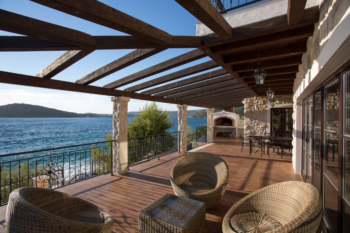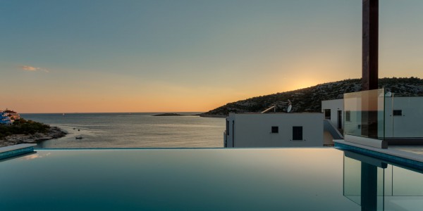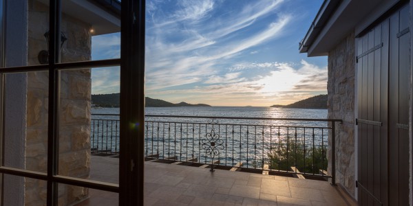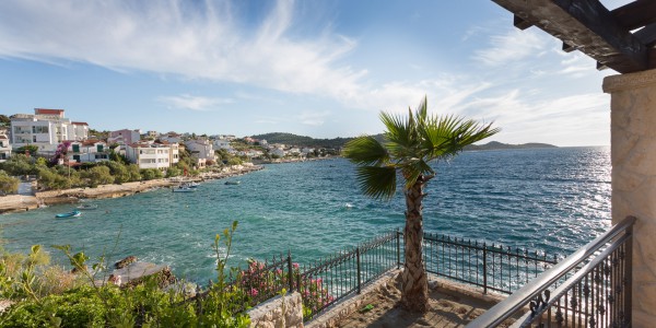 The villa is located on the bay Ljolijnica in Razanj. Razanj is a small picturesque place on the Dalmatian coast far from the majority of tourists. It is captivating because of its unspoiled nature and breathtaking bays. In these beautiful bays, people have built luxury villas where tourists like to spend their summer holidays enjoying the surrounding pine forests, beaches, and crystal clear water. You can reach Rogoznica with its world renowned exclusive Marina Frapa in five minutes by boat. The property is well connected. It borders on a paved road. You can visit Primosten, Sibenik, Trogir, and Split, all pearls of the Dalmatian coast. These cities are all nearby and can fulfill all your entertainment, cultural, and shopping needs. The property is located directly on the sea. You have your own swimming pier next to the boot dock. The villa has an open, undisturbed view of the water all the way to the horizon and faces west, providing spectacular views of the sunset.