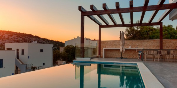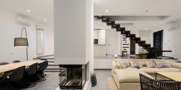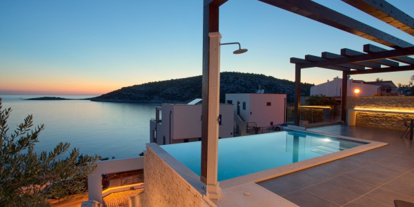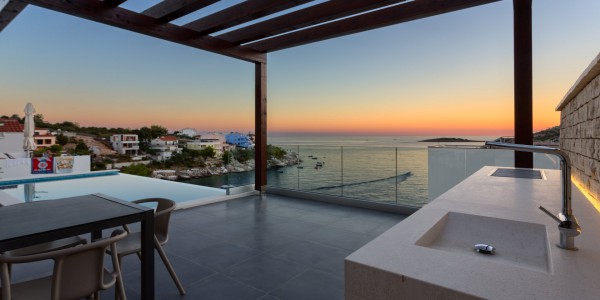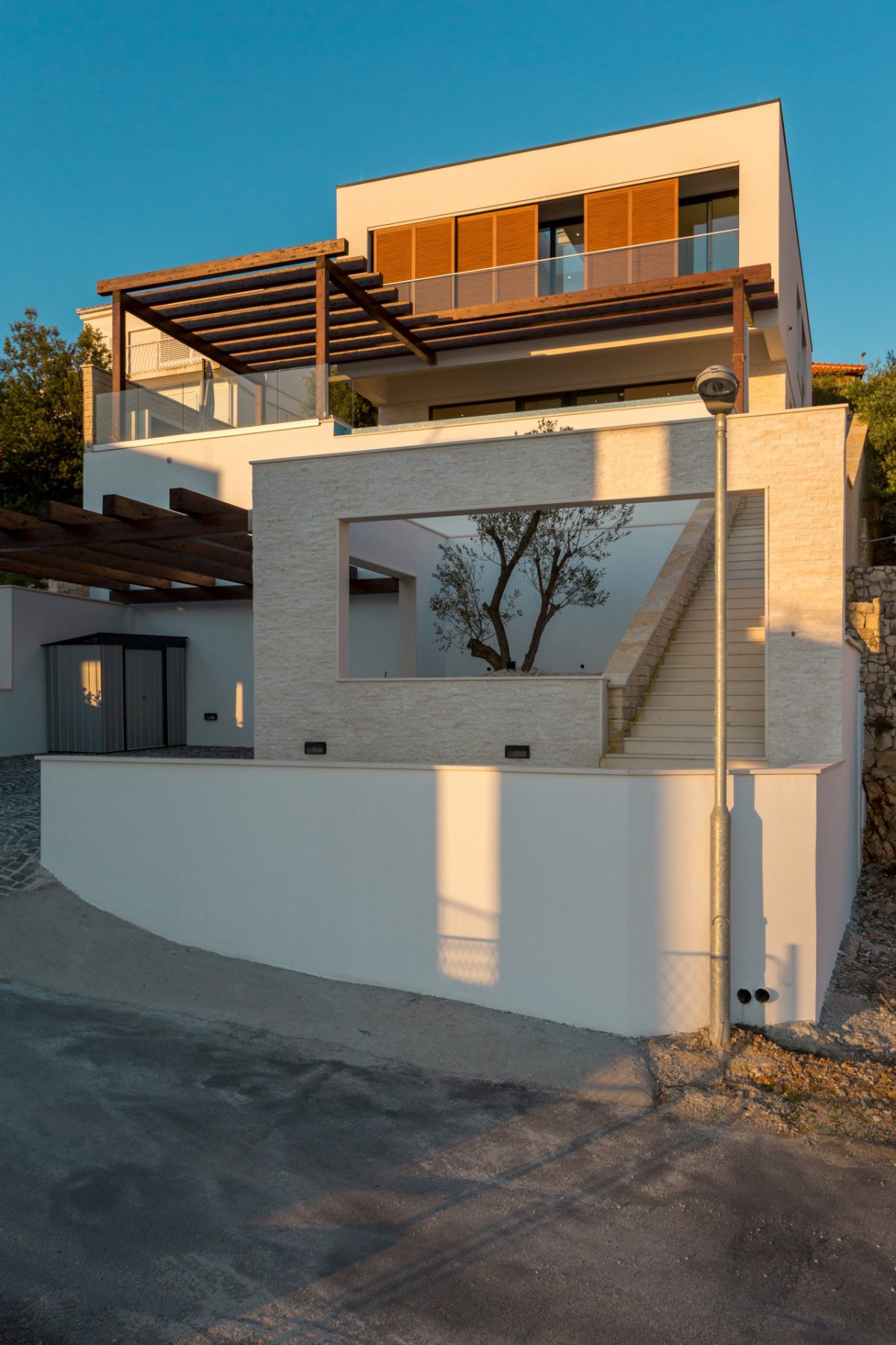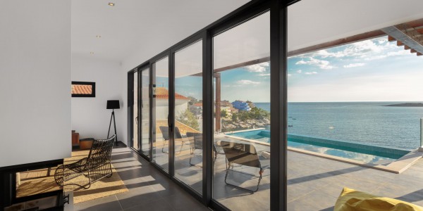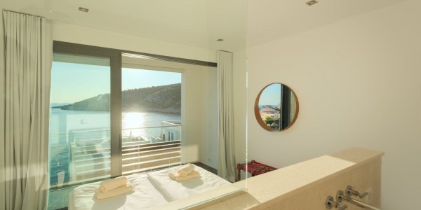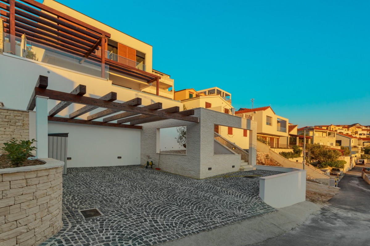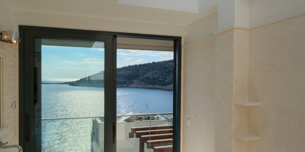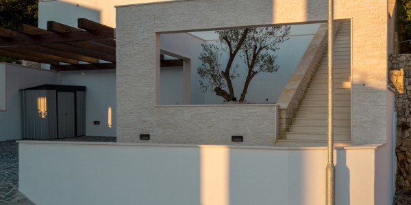 The villa is located in the Bay Stivasnica in Razanj. Razanj is a small picturesque place on the Dalmatian coast far from the majority of tourists. Its unspoiled nature and breathtaking bays are captivating. Stivasnica is an insider tip among lovers of Croatia. The clean crystal clear water invites you to swim and dive. The water quality is exceptionally good because Stivasnica, with several exclusive villas, is not used for mooring yachts. The connections to the property are good. It borders directly on a paved street. It is close to Rogoznica and its world renowned Marina Frapa. You can visit Primosten, Sibenik, Trogir, and Split, all pearls of the Dalmatian coast. These cities are all nearby and can fulfill all your entertainment, culture, and shopping needs. The property is in the second row and is only 50 meters from the sea. Because the property is on a hill, it has an undisturbed view of the sea all the way to the horizon. It faces west, allowing for a wonderful view of the sunset.